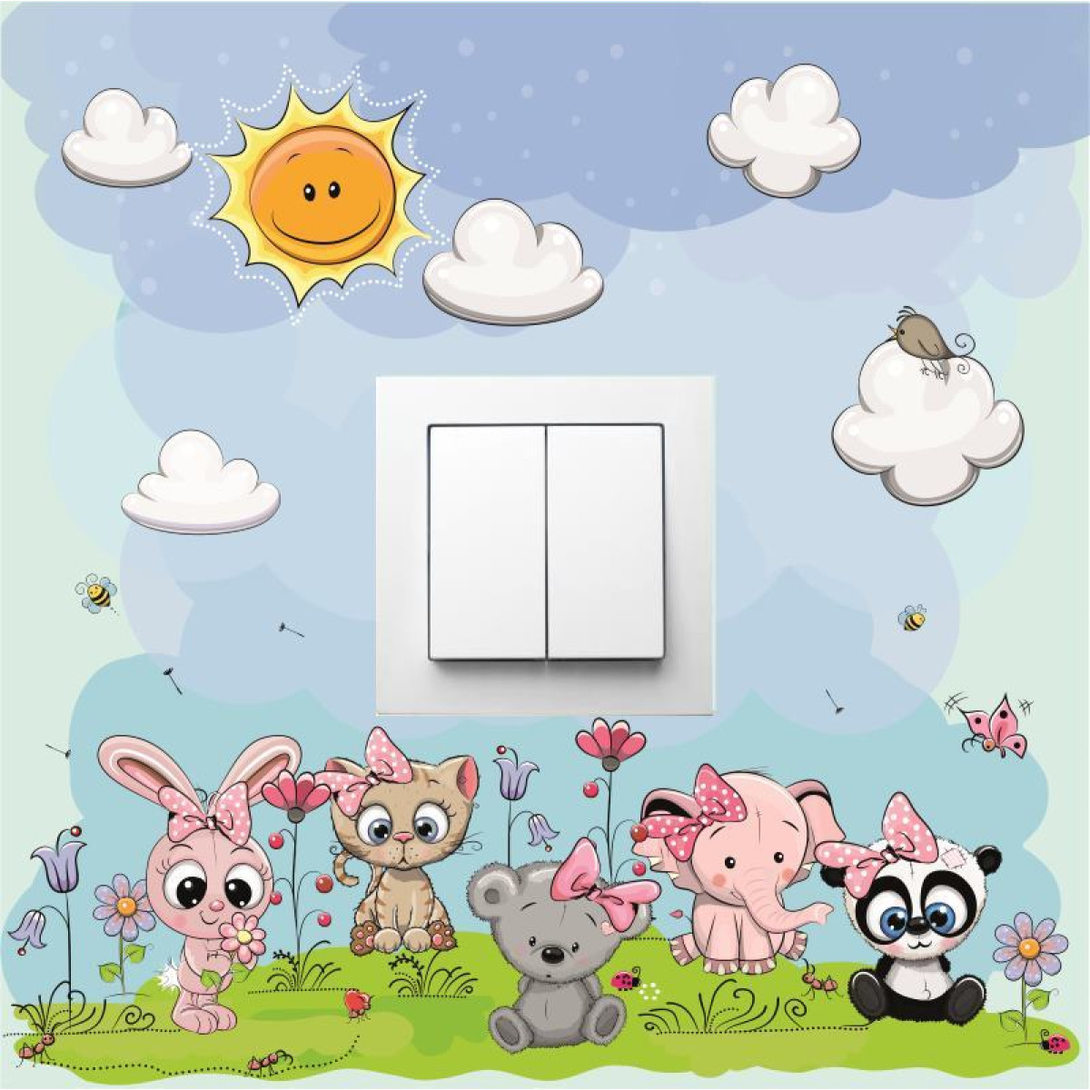 Állatos villanykapcsoló falmatrica, lány állatok gyerekszoba kapcsoló matrica