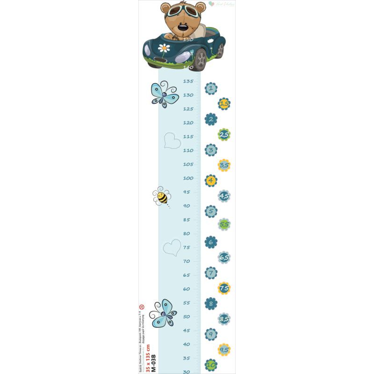 A magasságmérő matrica mérete 35 cm széles és 135 cm magas. A földtől 30 cm-re kell ragasztani felfelé. Fehér, nem átlátszó falmatrica. Színes és fehér gyerekszobába is teheted, nagyon mutatós.