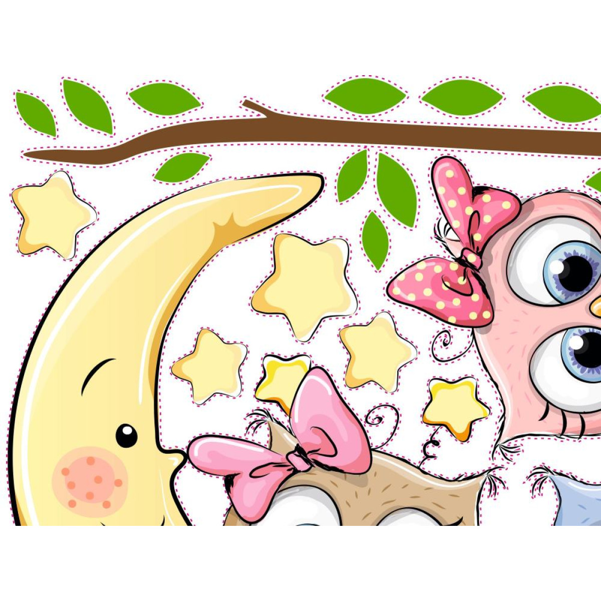 Faág, falevelek, baglyok és csillagok falmatrica.