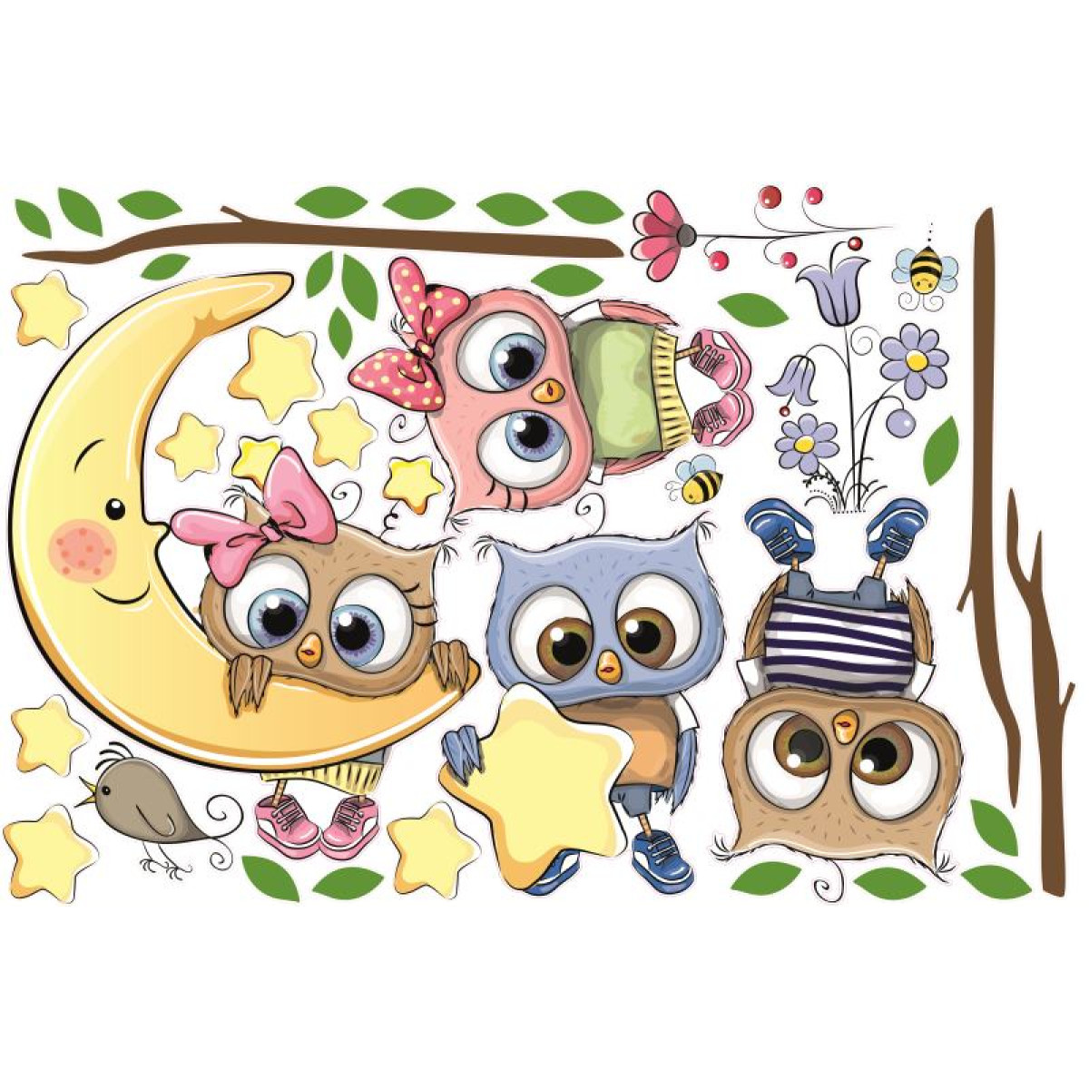 Bagoly kislány és kisfiú falmatrica csomag | 39 db-os szett | 70 cm x 45 cm-től