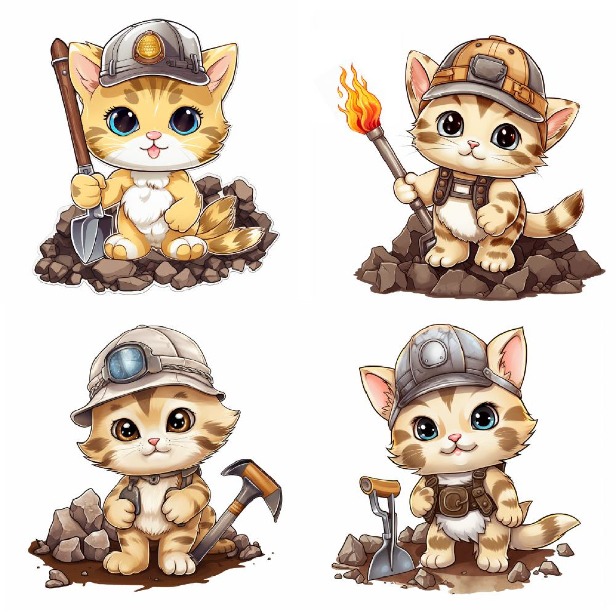 Bányász cicák ásóval, csákóval, fáklyával falmatrica kisfiú gyerekszobába