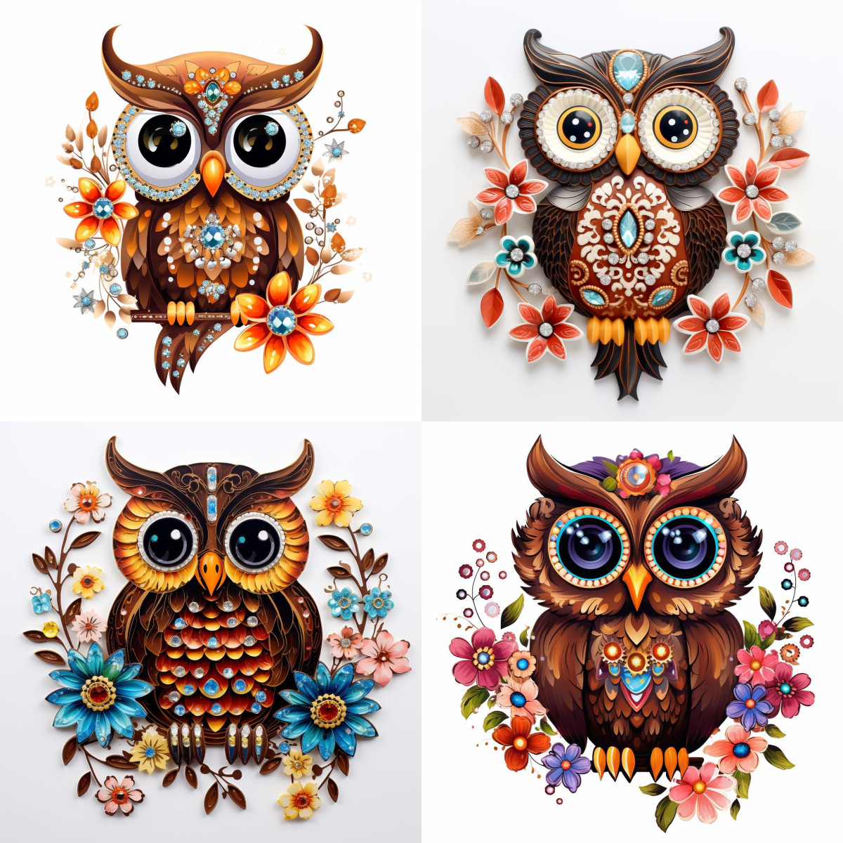 Négyféle baglyos faldekoráció, különböző dizájnnal gyerekszobába