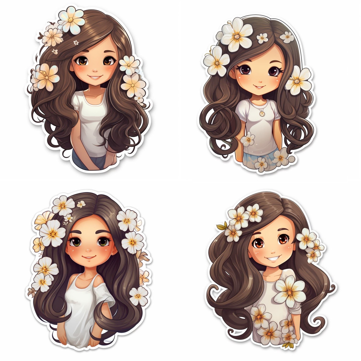Barna hajú kislányos falmatrica, fehér virágokkal a hajában, Gyerek Falmatrica kislány szobába