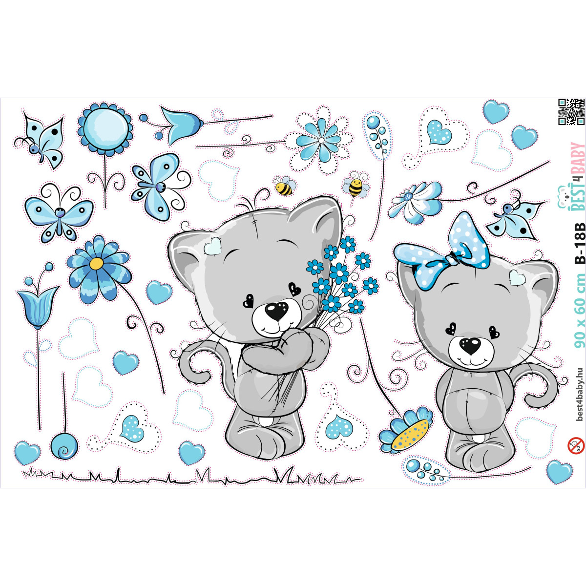Cicák kisfiú gyerek falmatrica, kék virágokkal