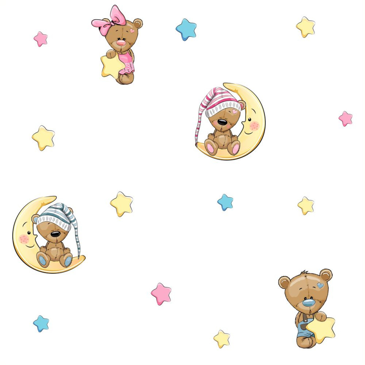 Csillagos macis gyerekszoba tapéta, csíkos