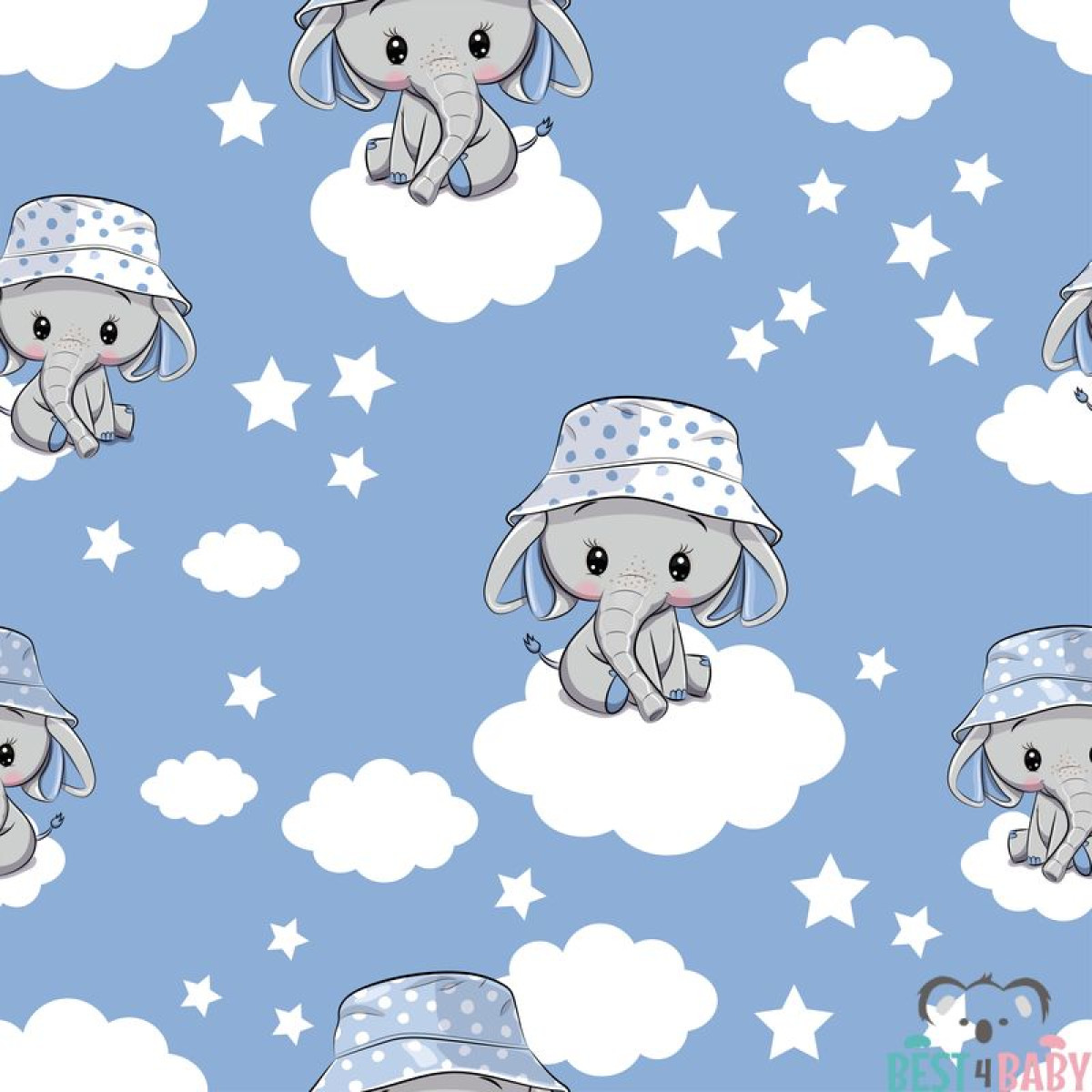 Kék, elefántos, felhős gyerekszoba tapéta, kisfiú