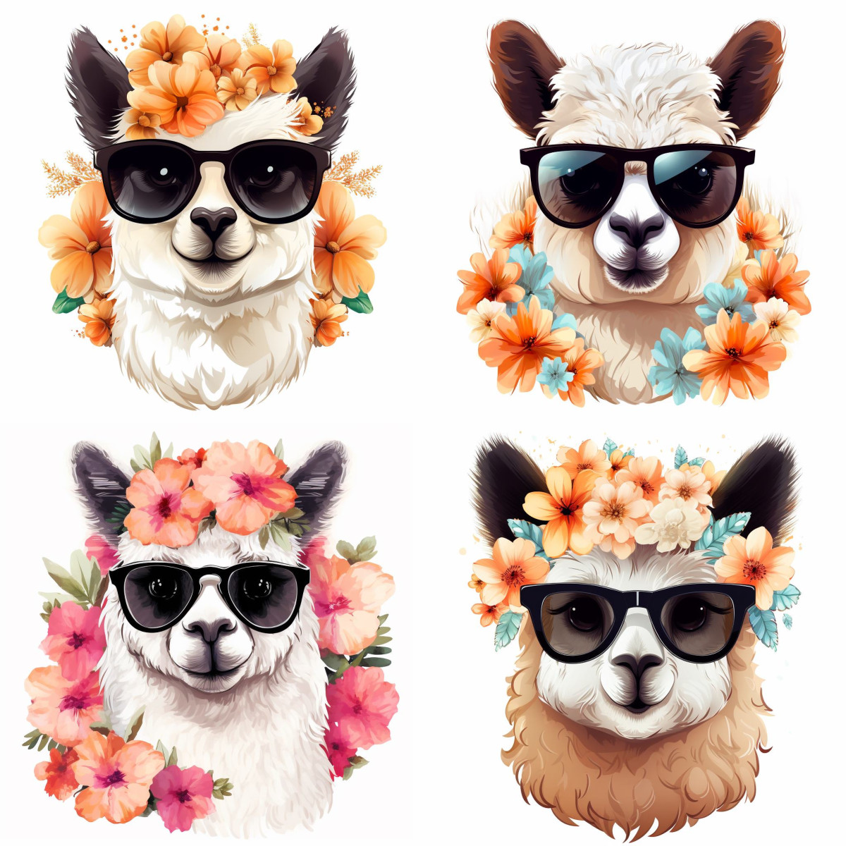 Láma virággal, napszemüvegben falmatrica | 8 + 24 db-os szett | 80 cm x 80 cm