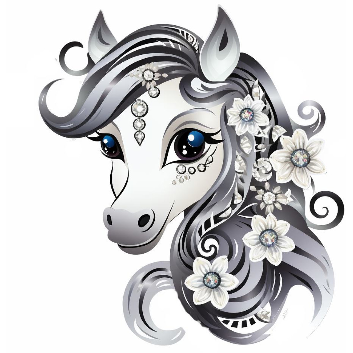 Gyönyörű ezüst szürke lovas koszorús falmatrica