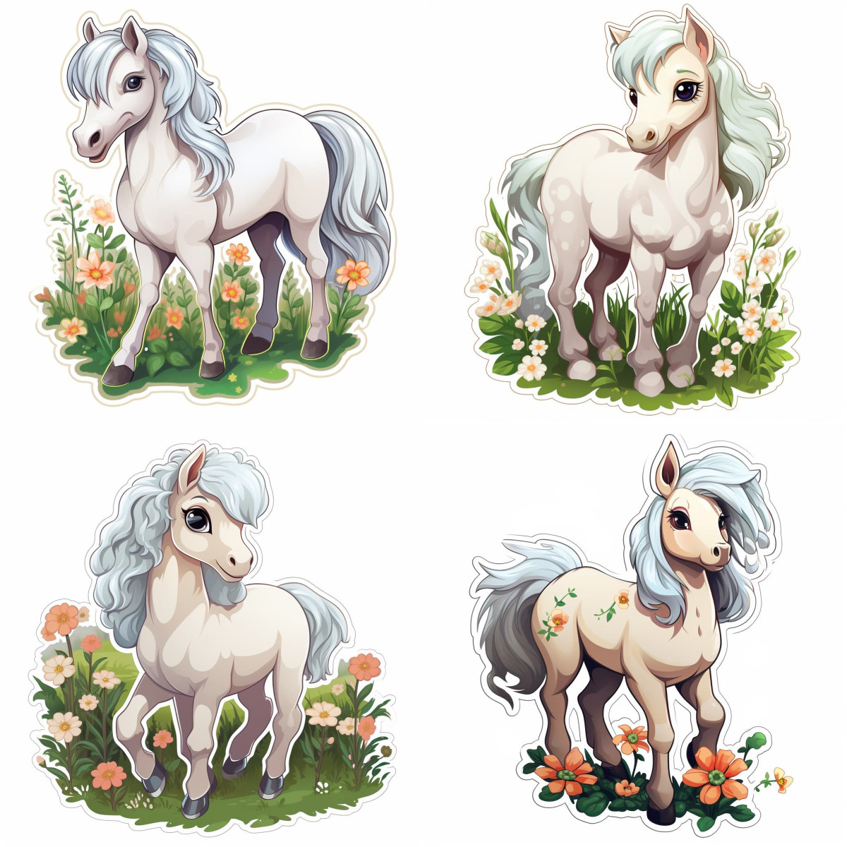 Teljes alakos fehér lovak virágos rét falmatrica