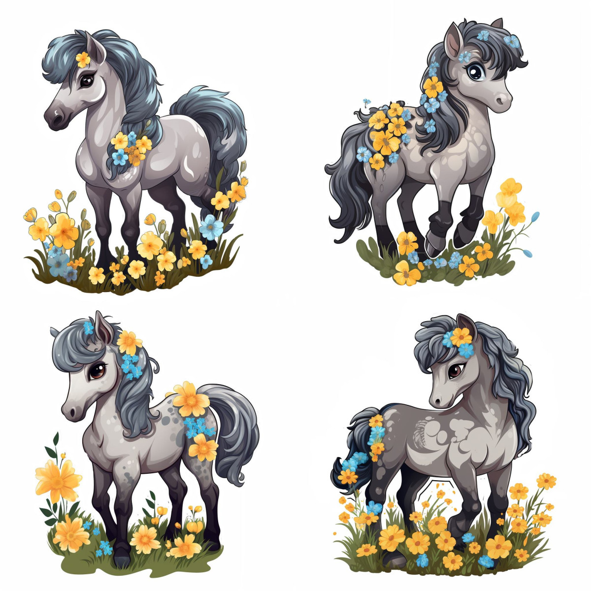 Szürke lovak virágos falmatrica