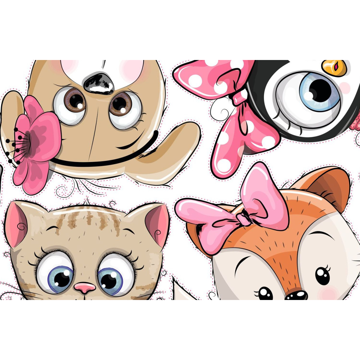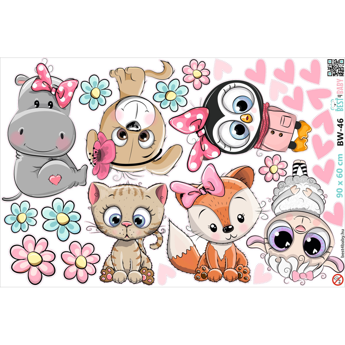 Állatos kislány falmatrica csomag, Macska, Viziló, Róka, Kutya, Pingvin, Bárány | 27 db-os szett | 70 cm x 45 cm-től