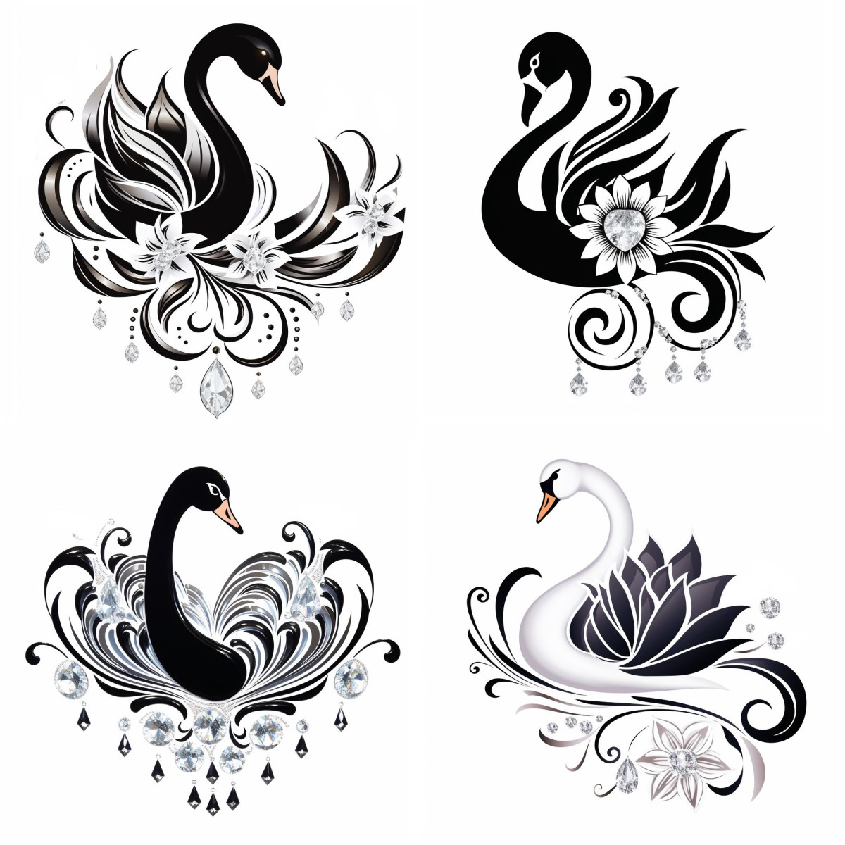 Fehér és fekete hattyús falmatrica | 8 + 24 db-os szett | 80 cm x 80 cm
