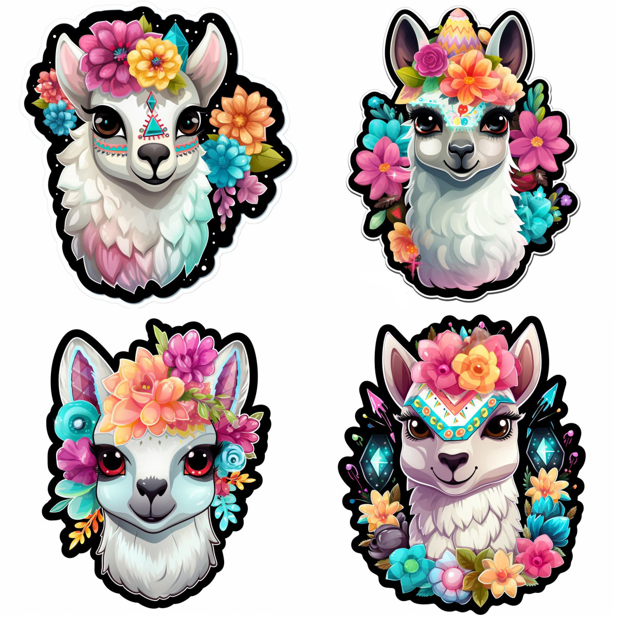 - 4 db kicsi láma állatos matrica bútorra, ajtóra, ablakra