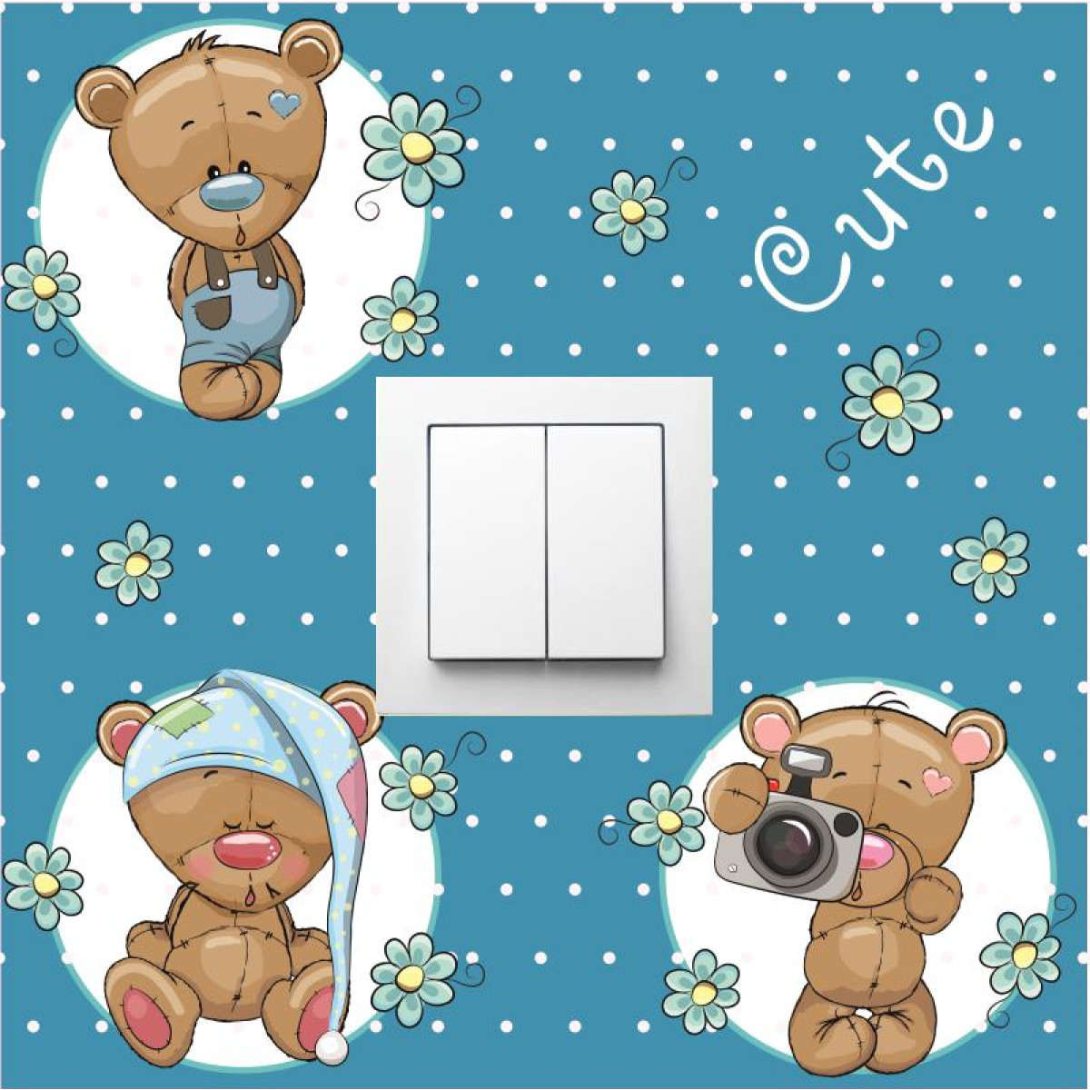 Villanykapcsoló falmatrica, kisfiú macik, matrica gyerekszobába