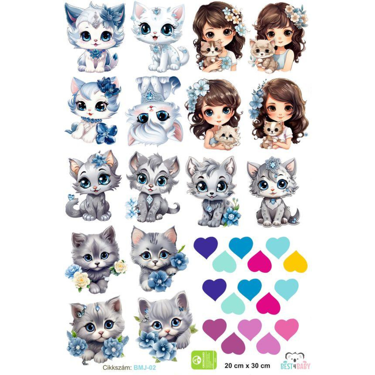 - 4 db kislány matrica macskával