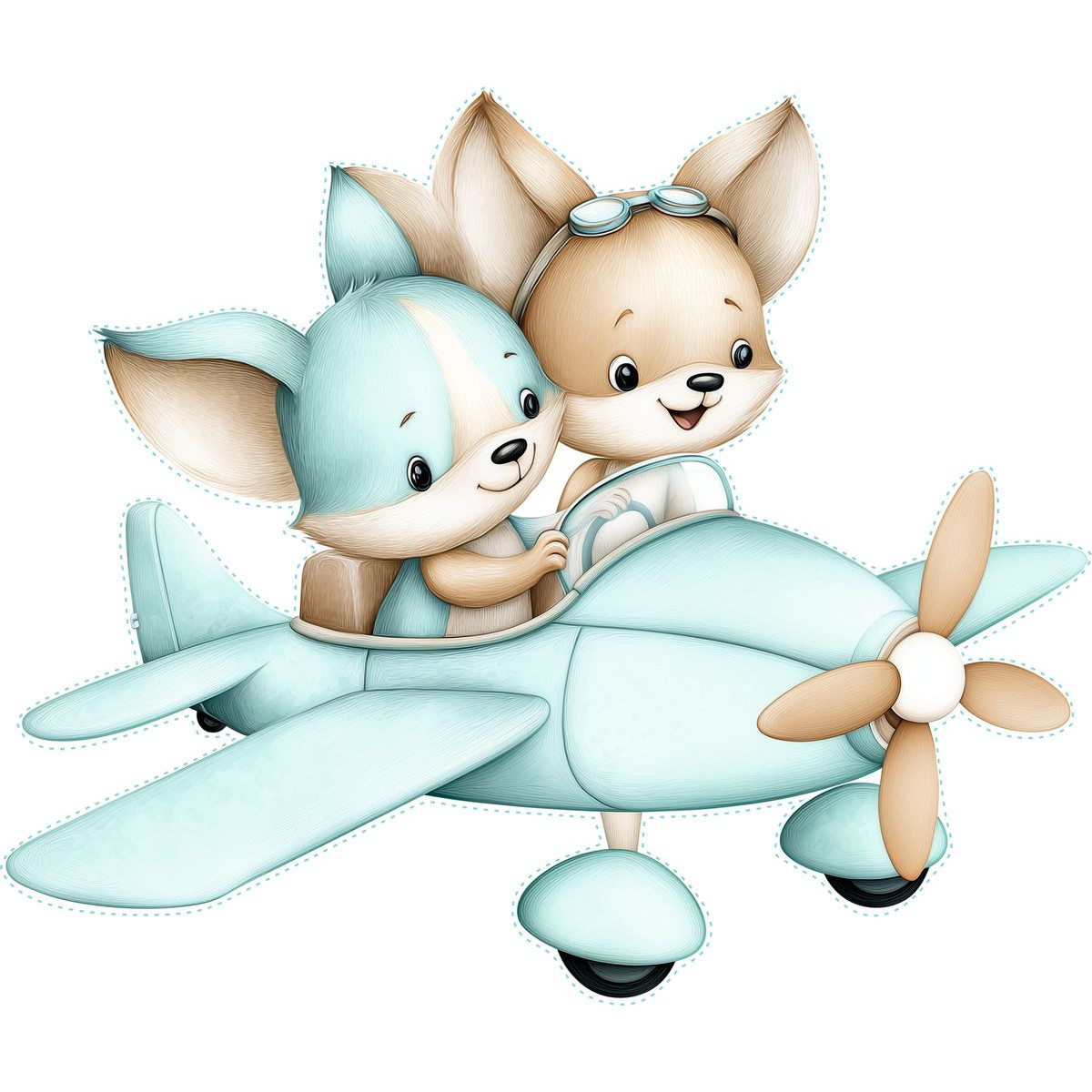 Gyerek rókák repülőgépen utaznak gyerekszoba falmatrica