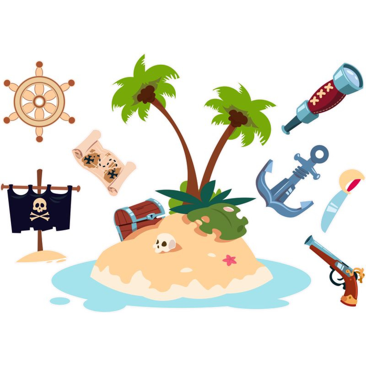 TAG-ek: Kalóz, falmatrica, kincses, sziget, |, 8, db-os, szett, |, 70, cm, x, 45, cm-től