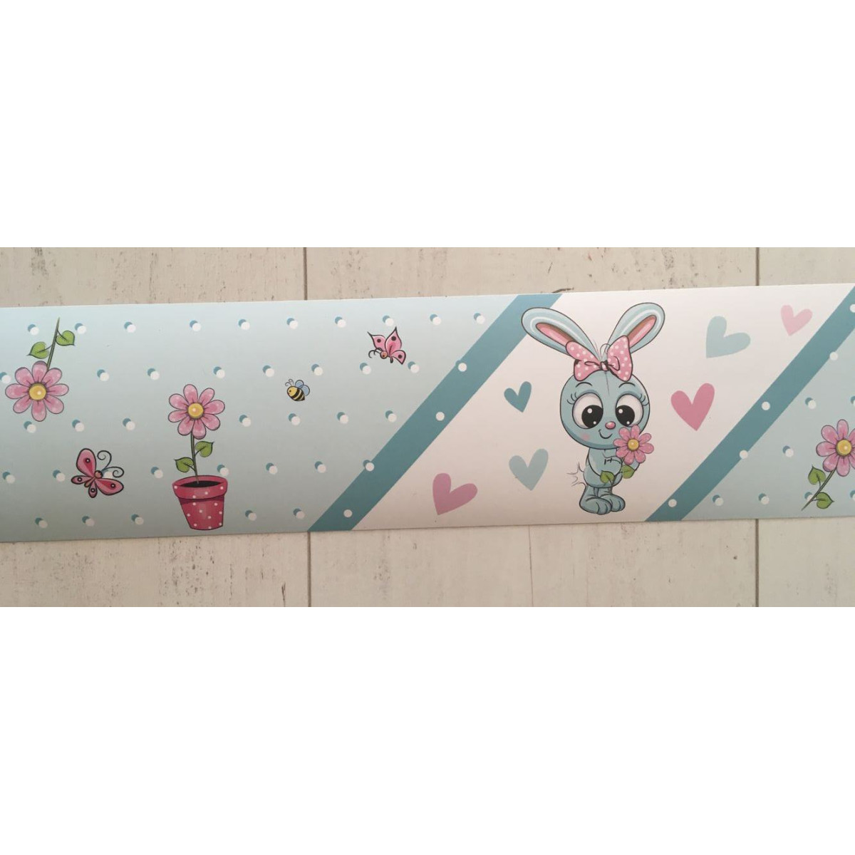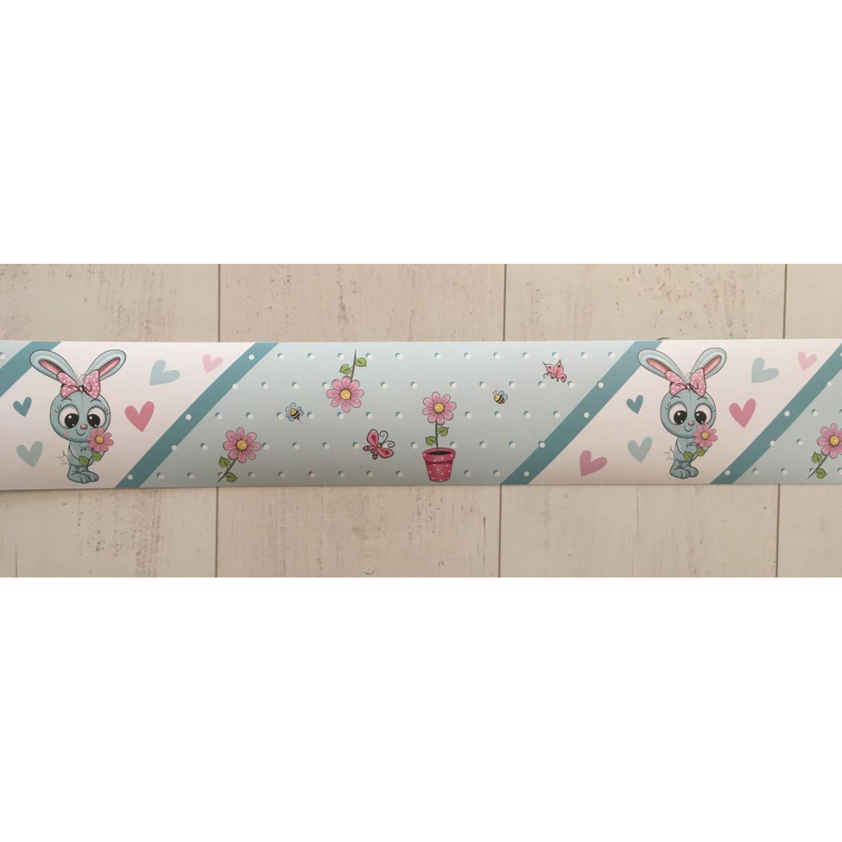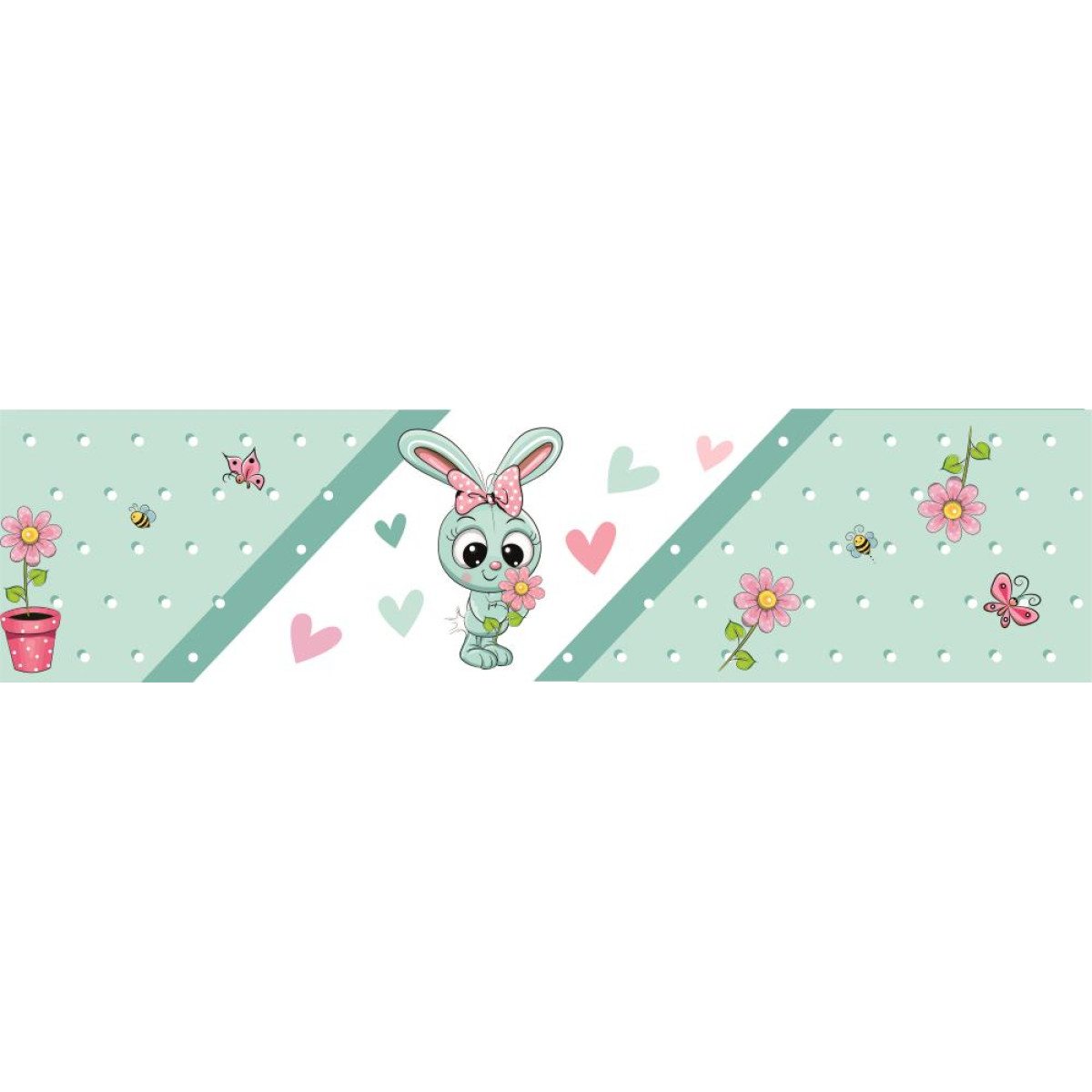 Menta zöld, rózsaszín kislány nyuszis öntapadós gyerekszoba bordűr matrica