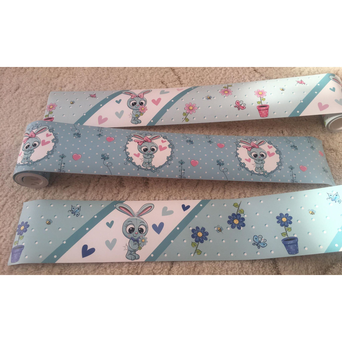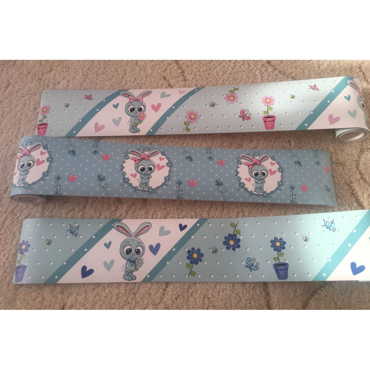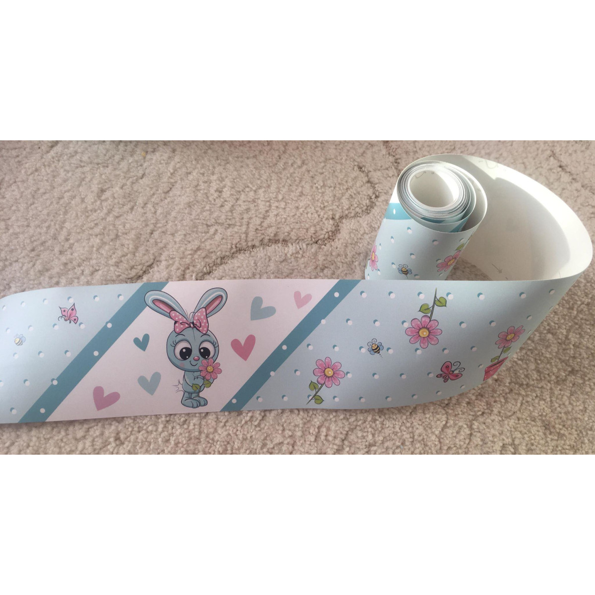 Menta zöld, rózsaszín kislány nyuszis öntapadós gyerekszoba bordűr matrica