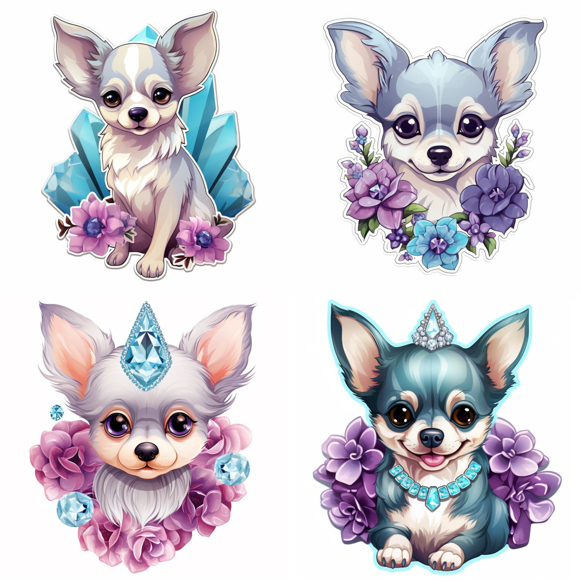 Lila Csivava Kutyás falmatrica, ékszerekkel | 8 + 24 db-os szett | 80 cm x 80 cm