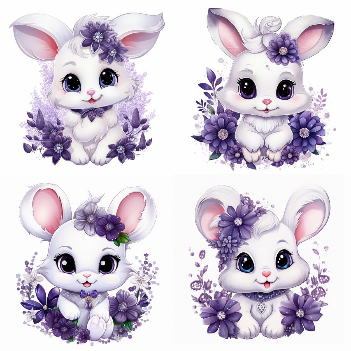 TAG-ek: Fehér, nyuszis, falmatrica, lila, virágokkal, |, 8, 4, db-os, szett, |, 80, cm, x, 80, cm