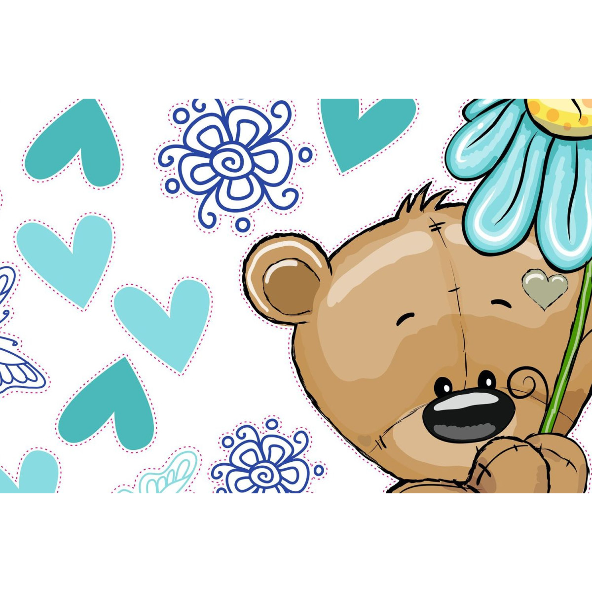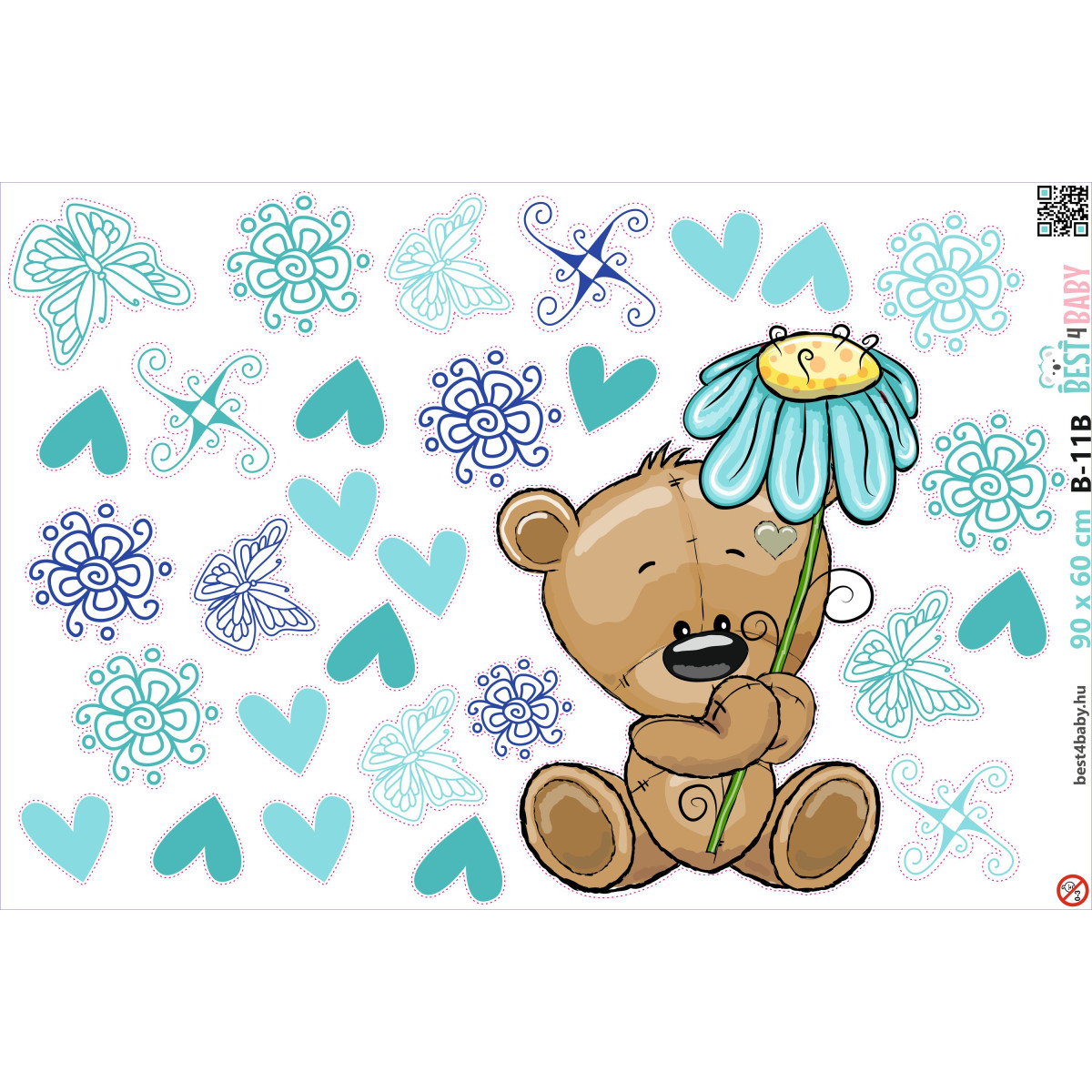 Teddy maci kék virággal faldekoráció, gyerek kisfiú falmatrica