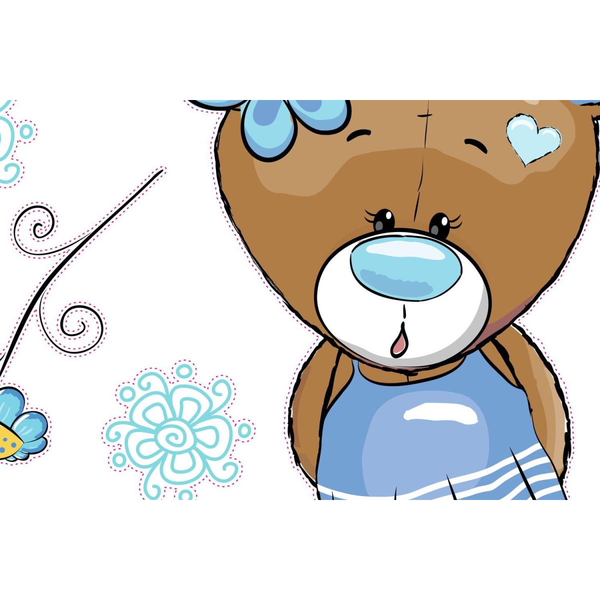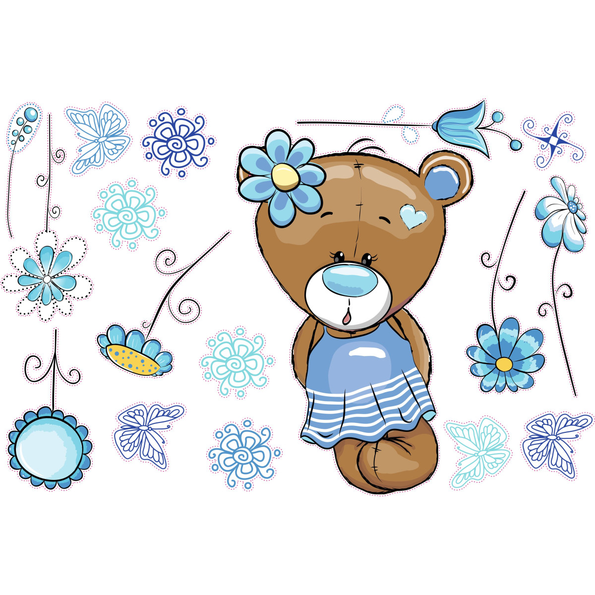 TAG-ek: Kék, maci, kislány, virágokkal, falmatrica, |, 7, db-os, szett, |, 70, cm, x, 45, cm-től