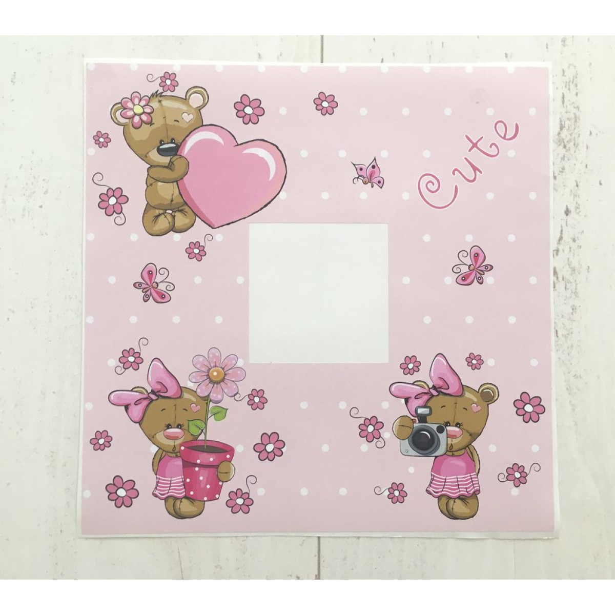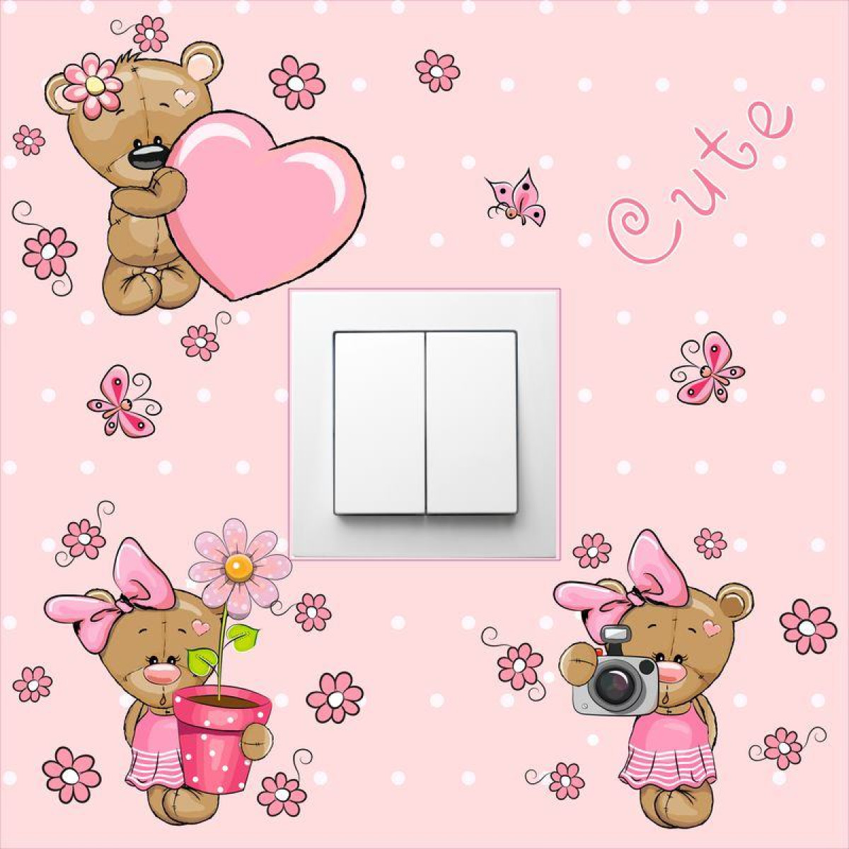 Villanykapcsoló falmatrica, maci kislányok, pink matrica gyerekszobába