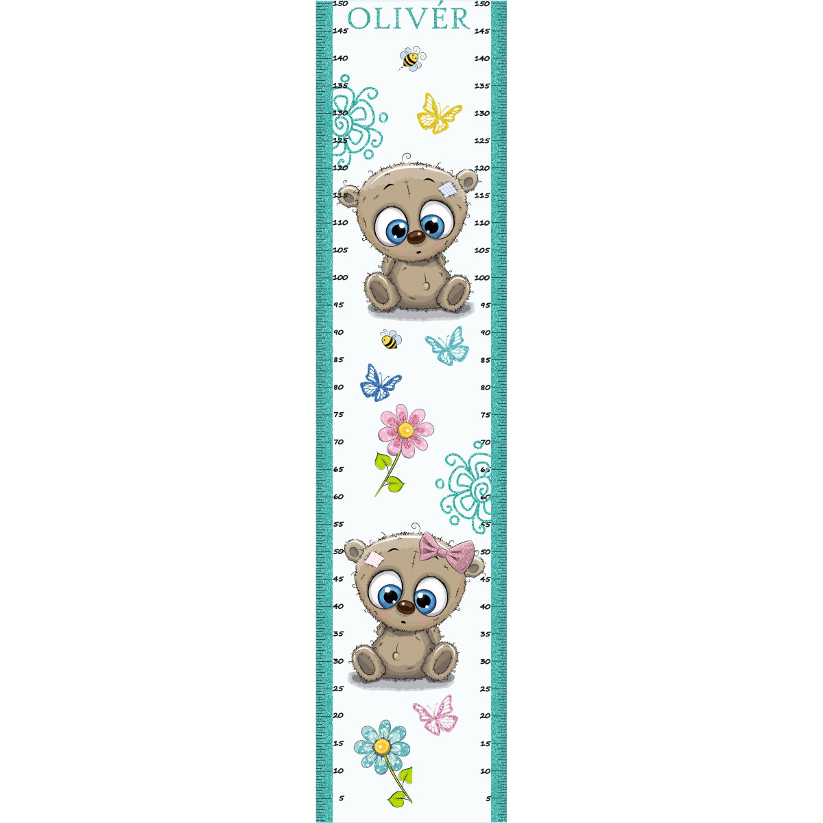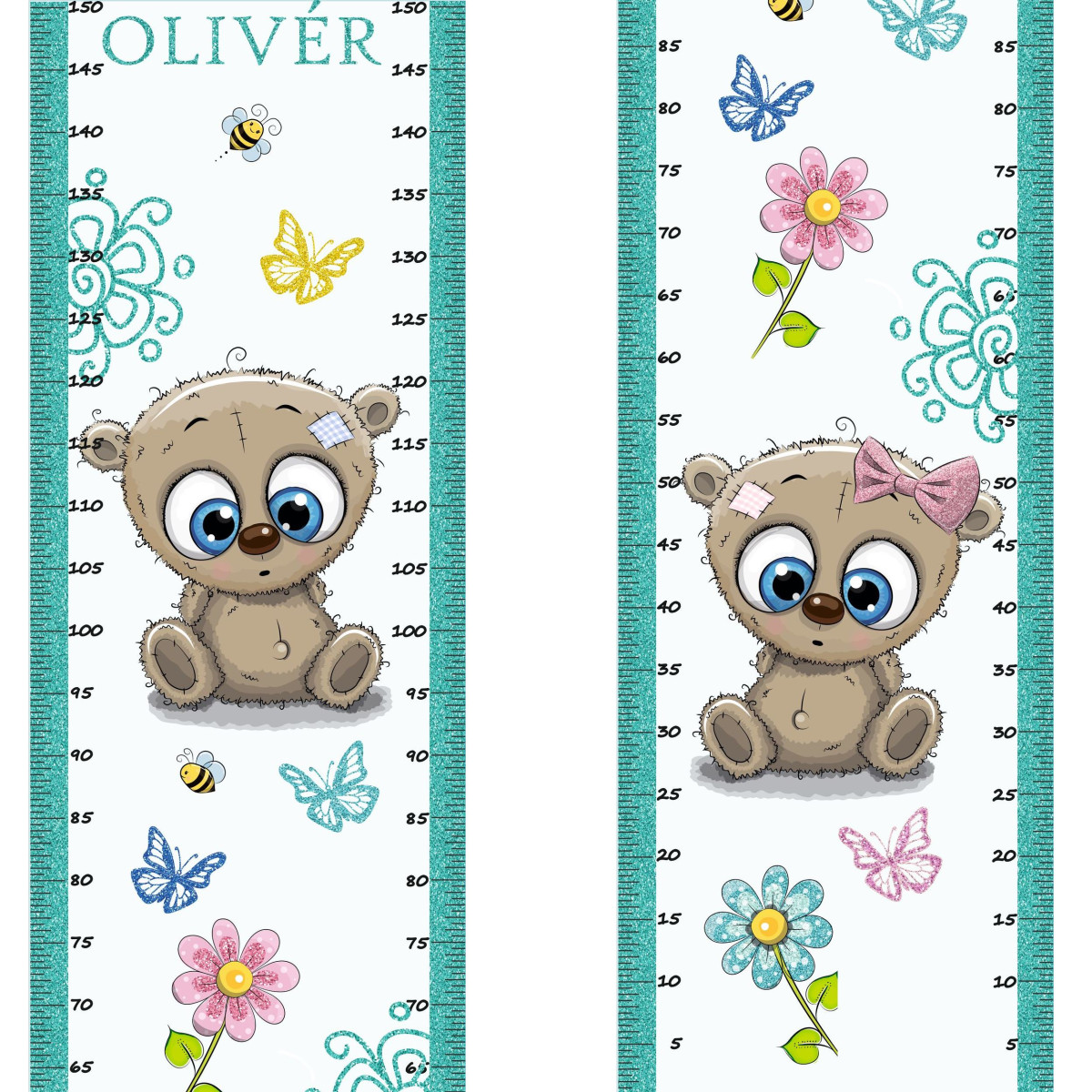 Saját neves magasságmérős falmatrica, menta csillámos, glitteres mintázattal, két oldalon is magasságmérővel (jobb, bal)