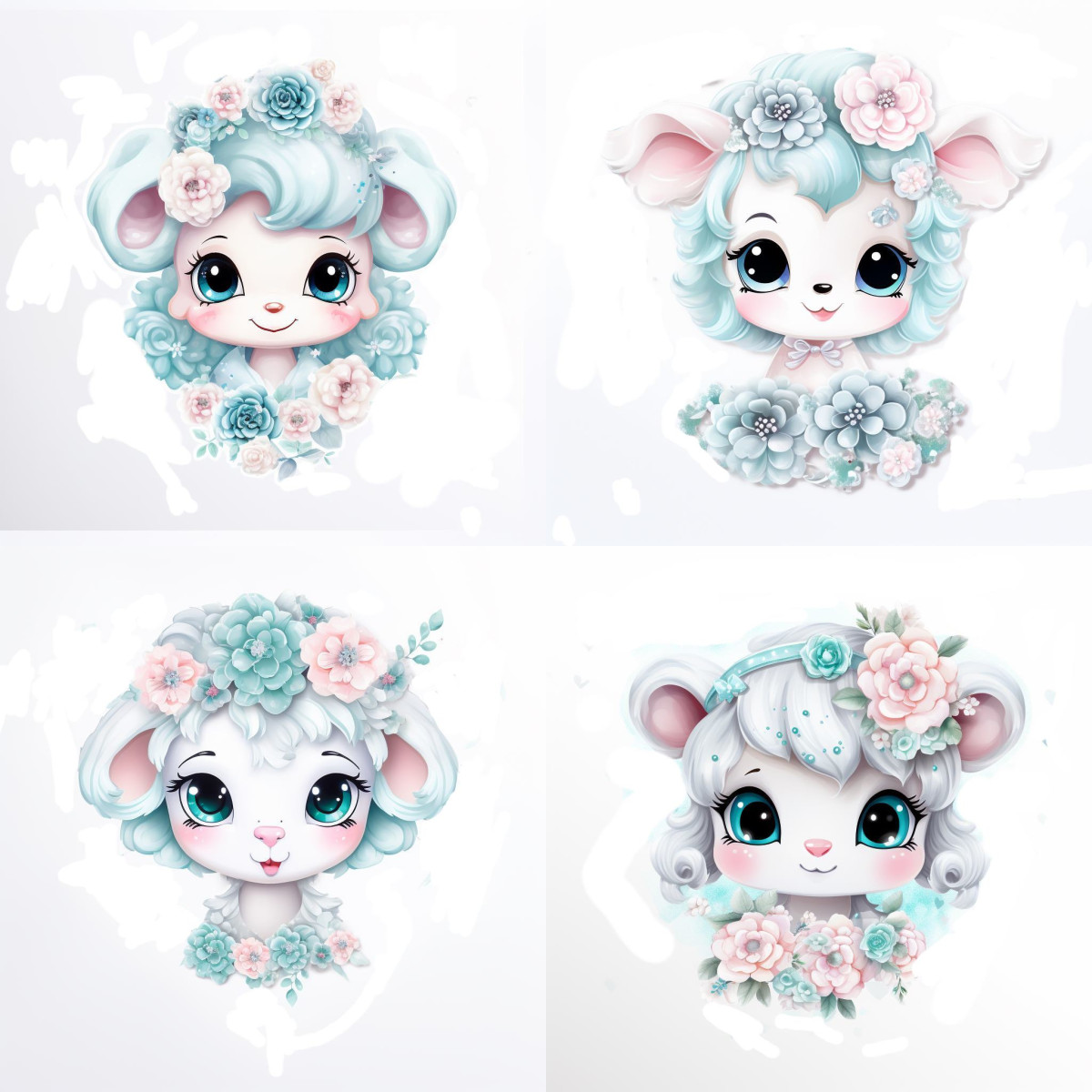 TAG-ek: Menta, virágos, fehér, bárányos, falmatrica, |, 8, 4, db-os, szett, |, 80, cm, x, 80, cm