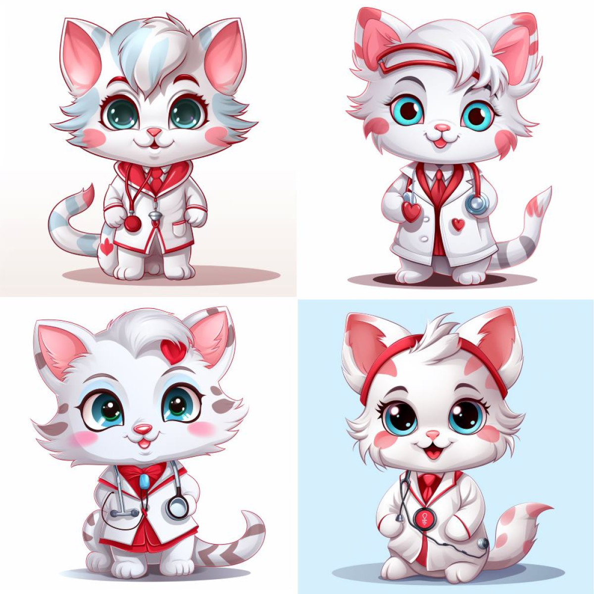 Cica nővérke ruhában, fehér macskás gyerekeknek szóló falmatrica