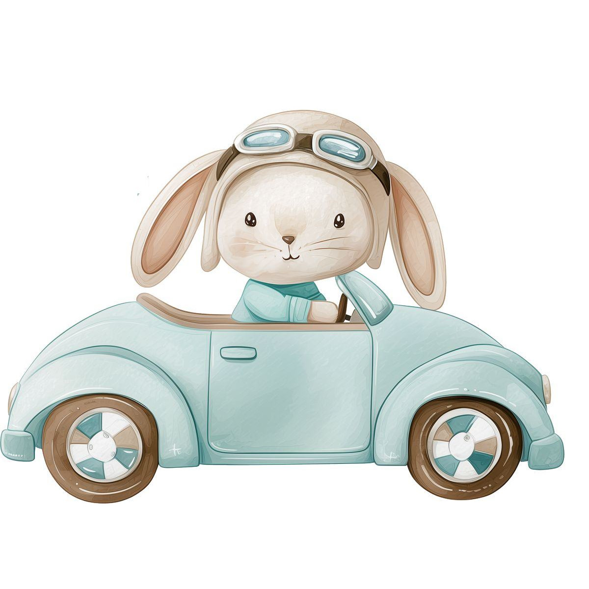 Nyuszis autós gyerek falmatrica