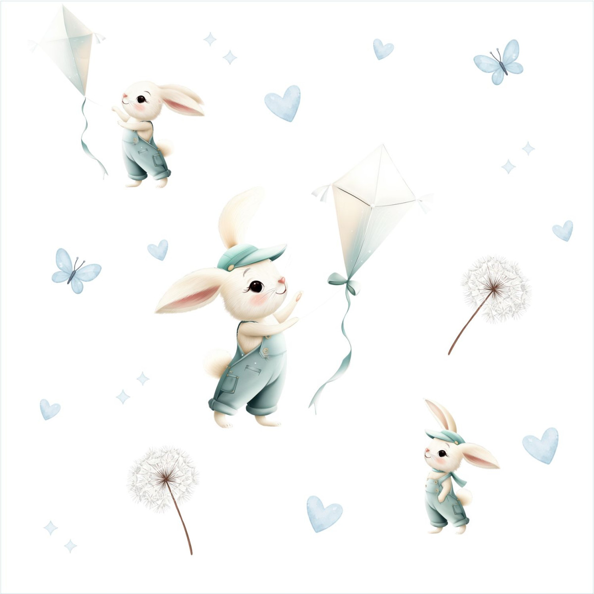 Nyuszis kisfiú tapéta, papírsárkány eregetős | 50 cm x 250 cm