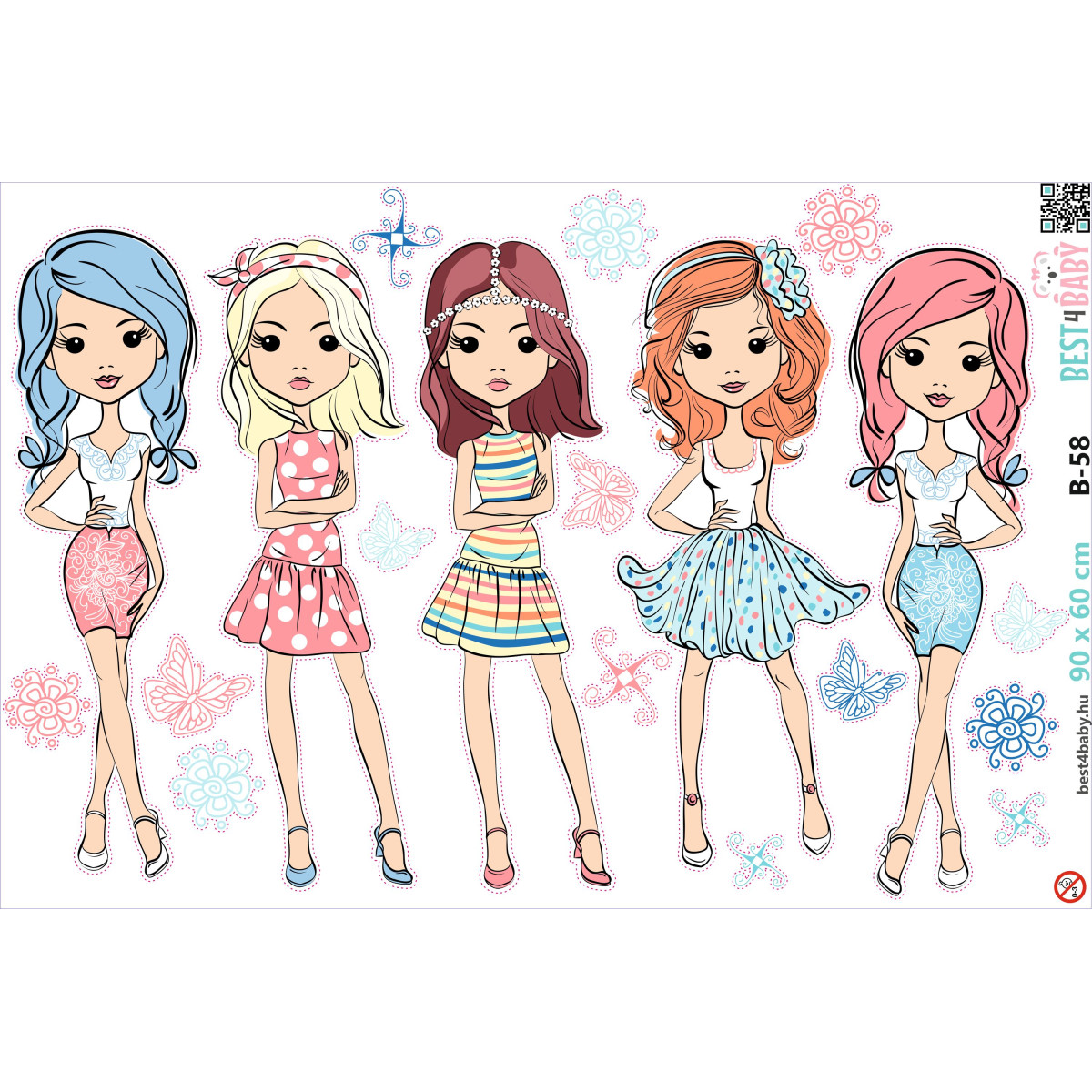 TAG-ek: Divatos, lányos, falmatrica, |, 9, db-os, szett, |, 70, cm, x, 45, cm-től