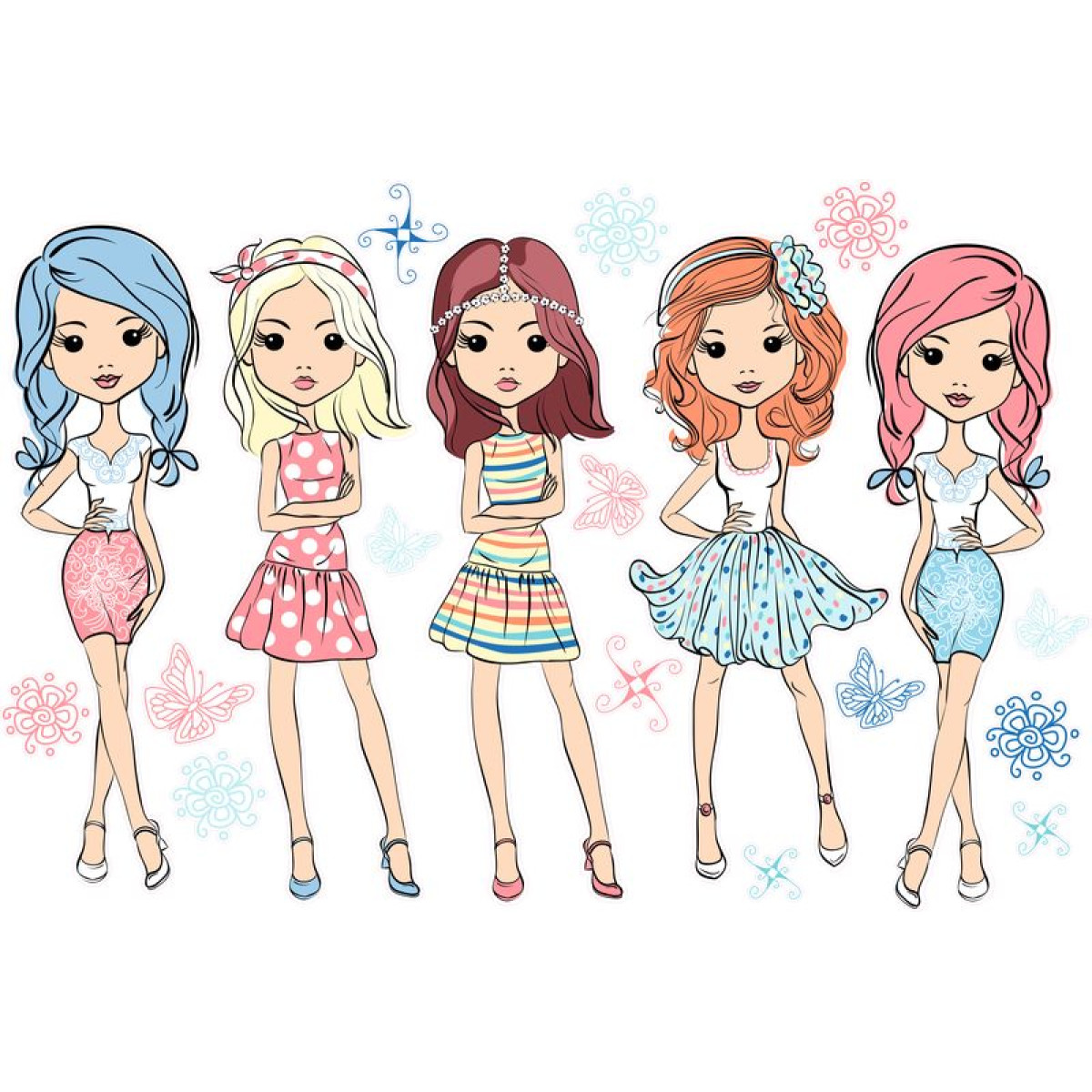 Divatos lányos falmatrica | 19 db-os szett | 70 cm x 45 cm-től