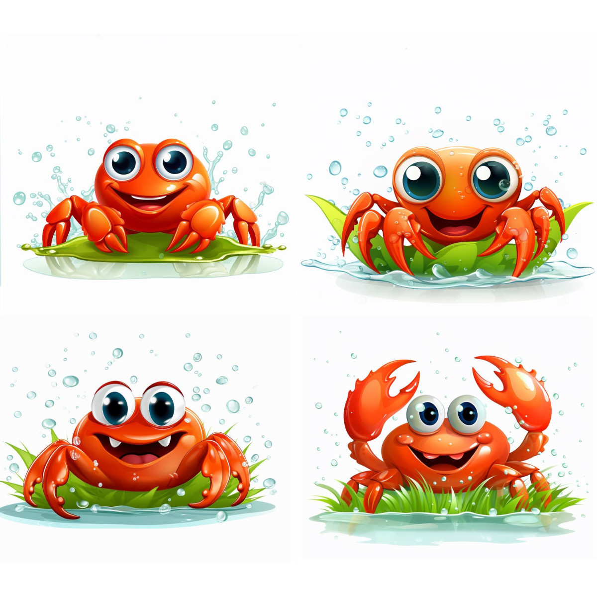 Narancssárga folyami rák faldekoráció gyerekeknek, rk a zöld levélen algán pancsol, vízbuborékok