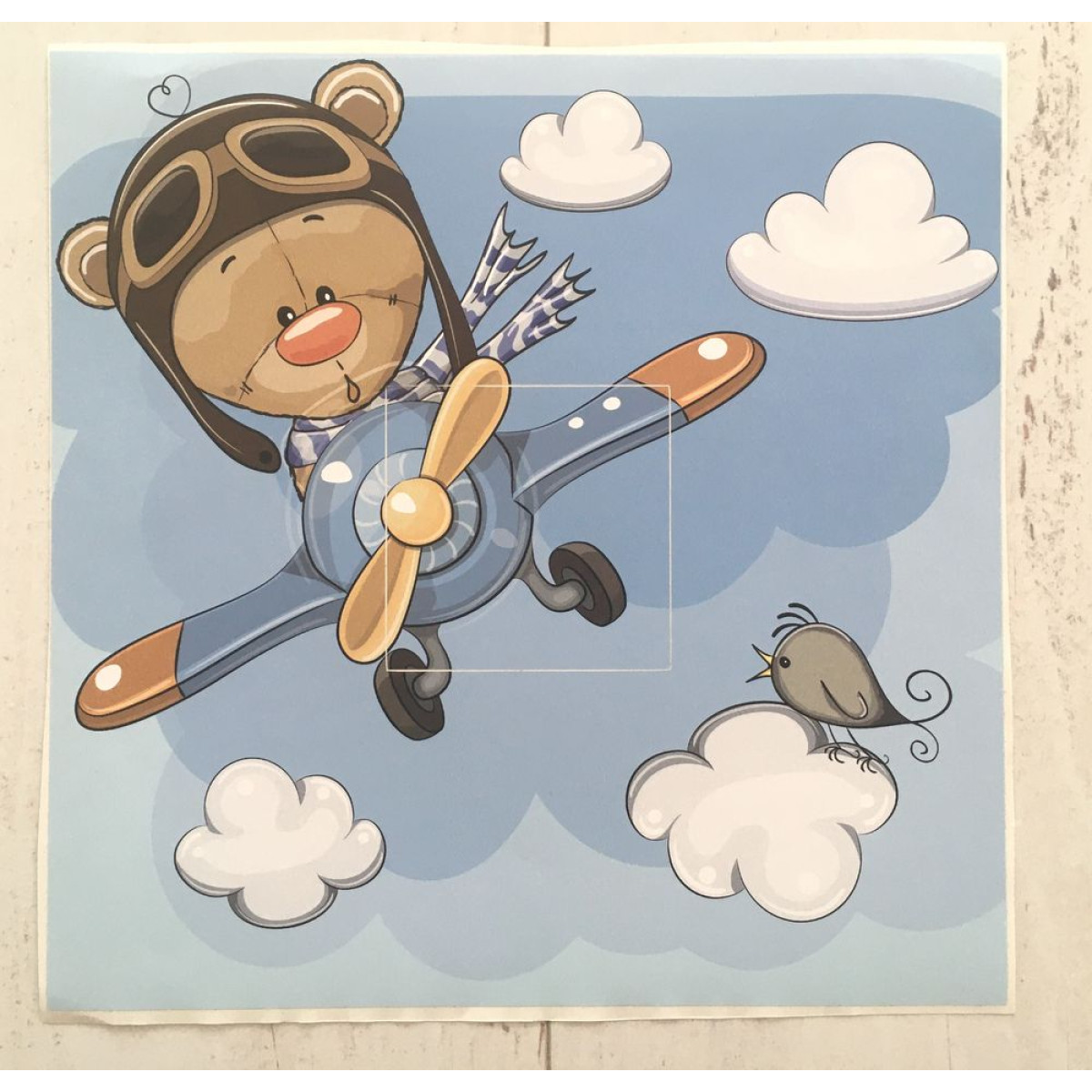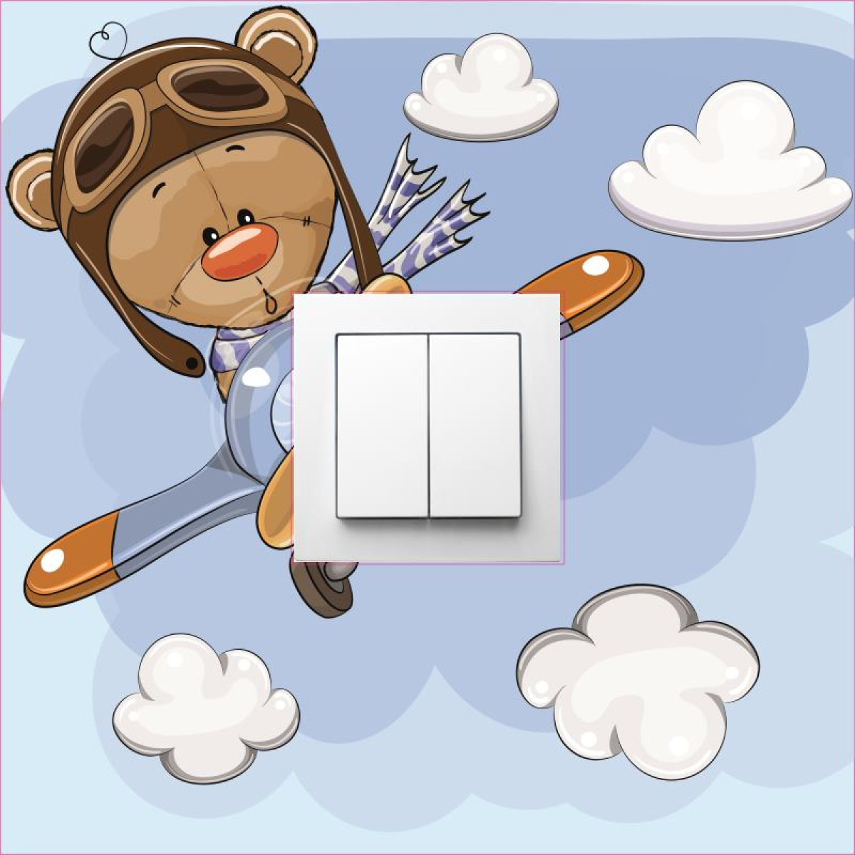 Villanykapcsoló falmatrica, maci repülővel, gyerekszobába