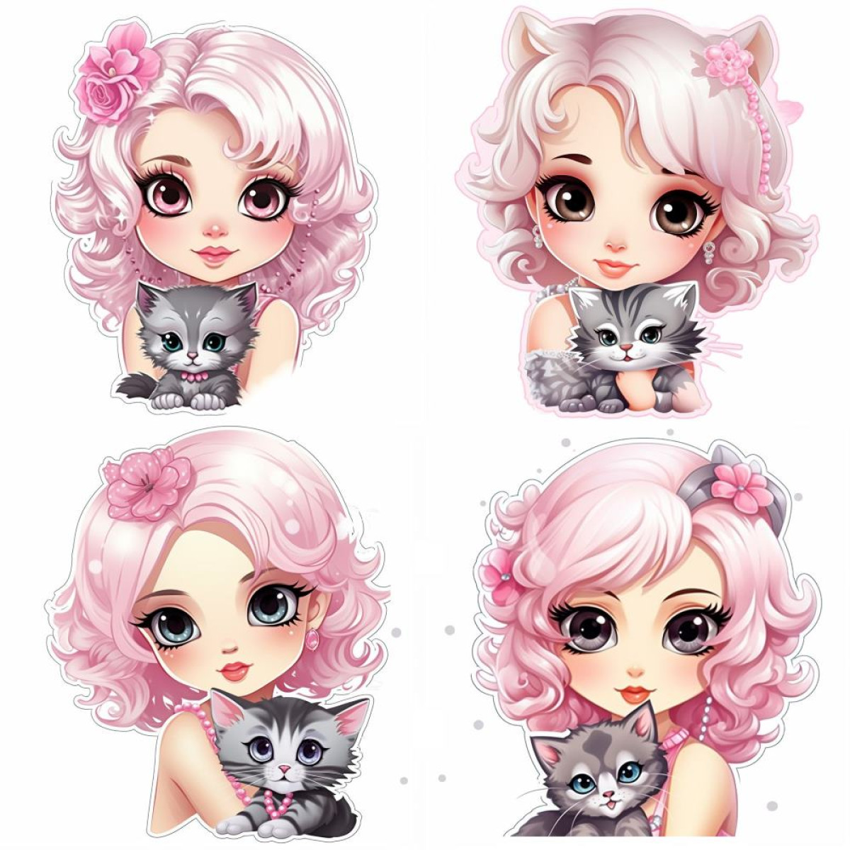 TAG-ek: Rózsaszín, hajú, kislány, házimacskával, falmatrica, |, 8, 4, db-os, szett, |, 80, cm, x, 80, cm