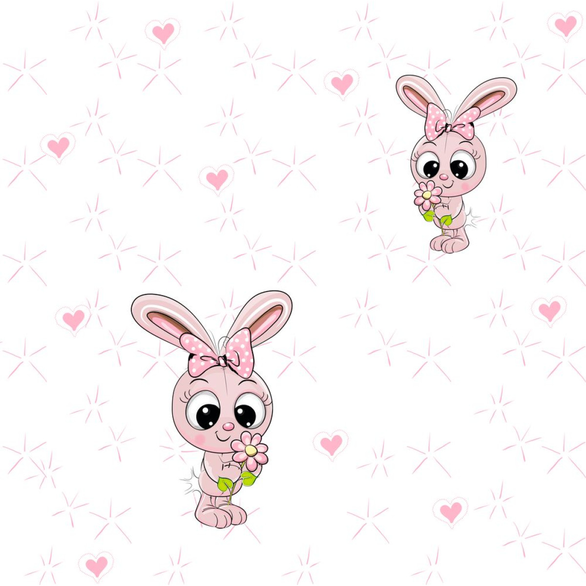 Pink nyuszis gyerekszoba tapéta, lány nyuszi virággal gyerektapéta