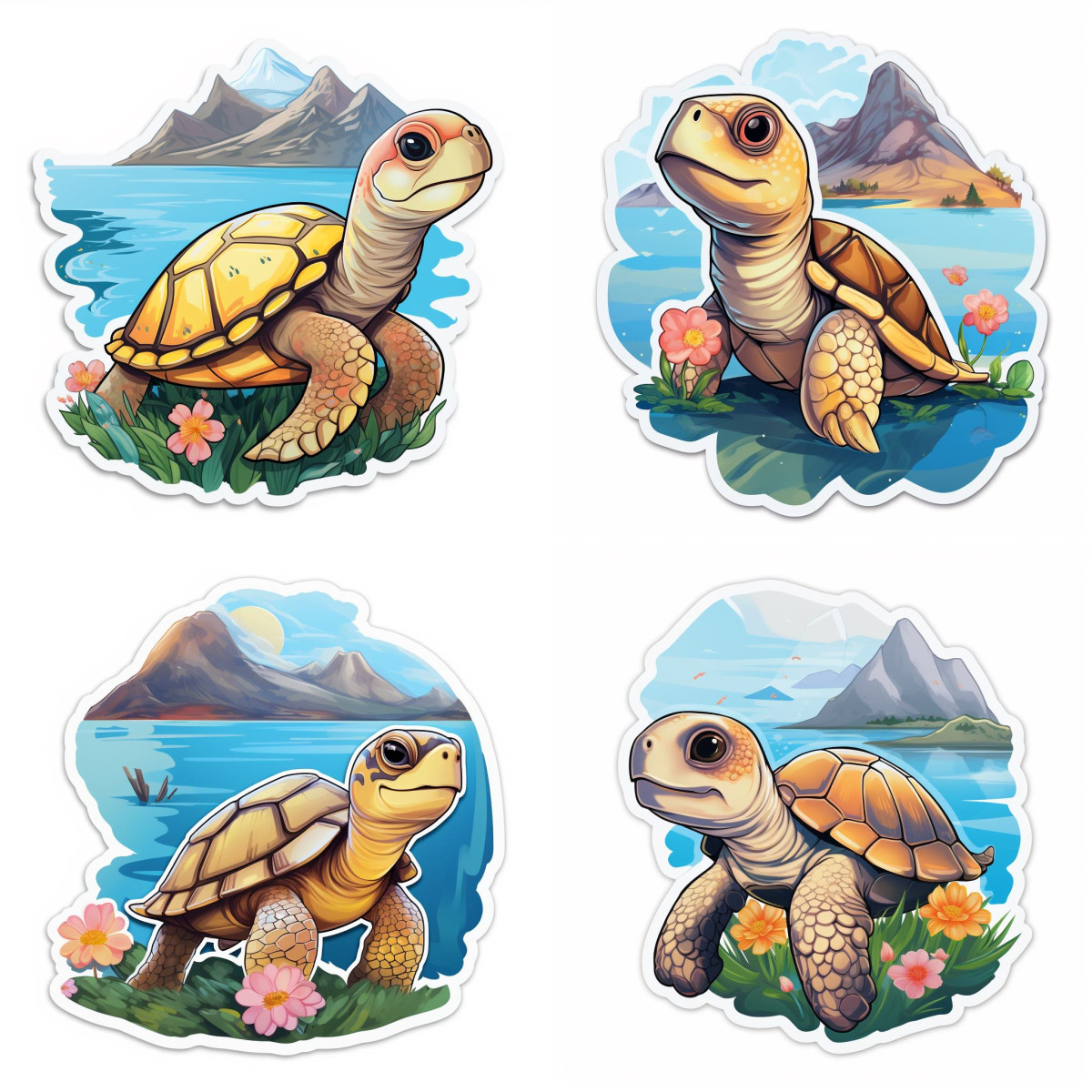 TAG-ek: Teknősbéka, hegy, falmatrica, virágokkal, gyerekszobába, |, 8, 4, db-os, szett, |, 80, cm, x, 80, cm
