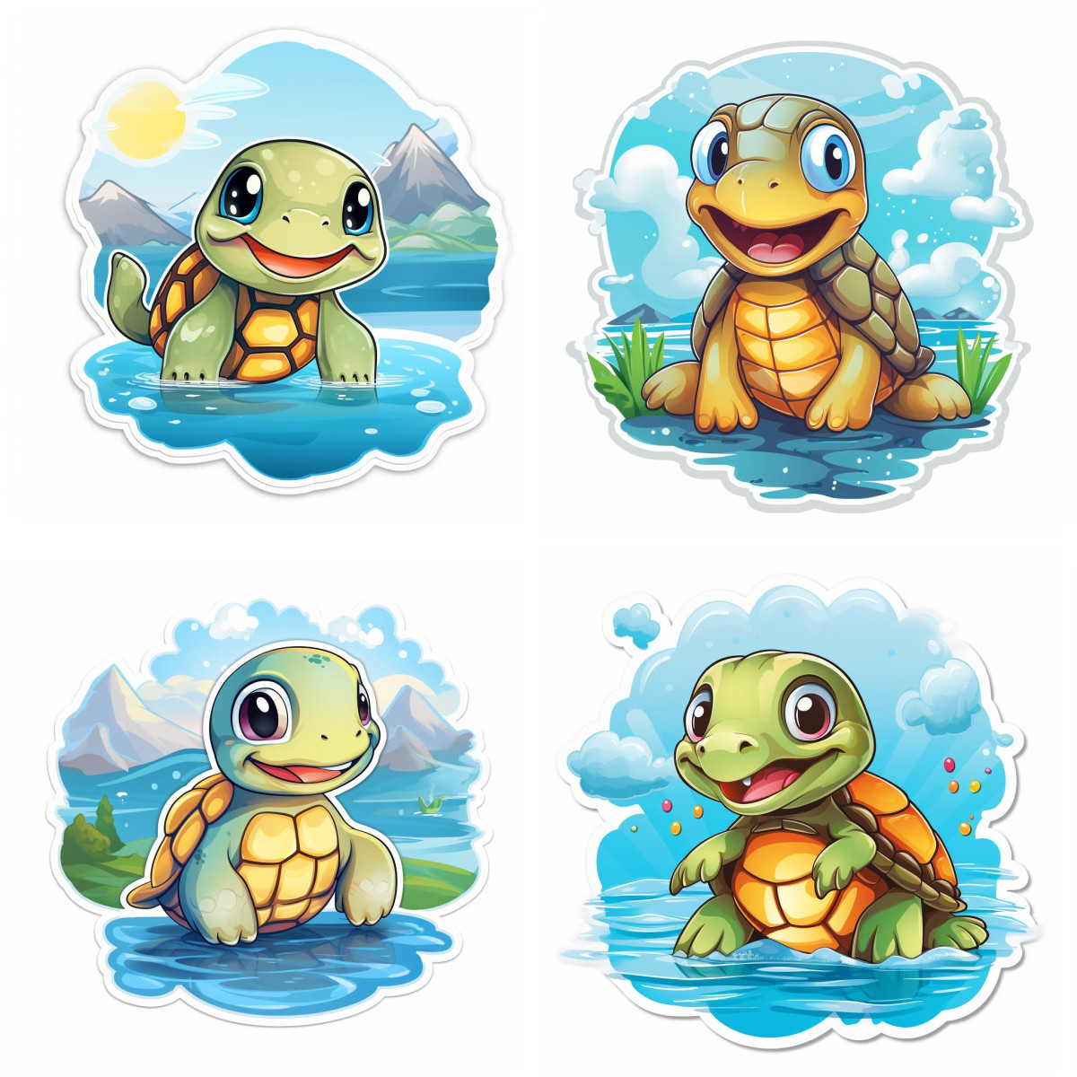 Teknősök vízben fürdenek falmatrica | 8 + 40 db-os szett | 80 cm x 80 cm