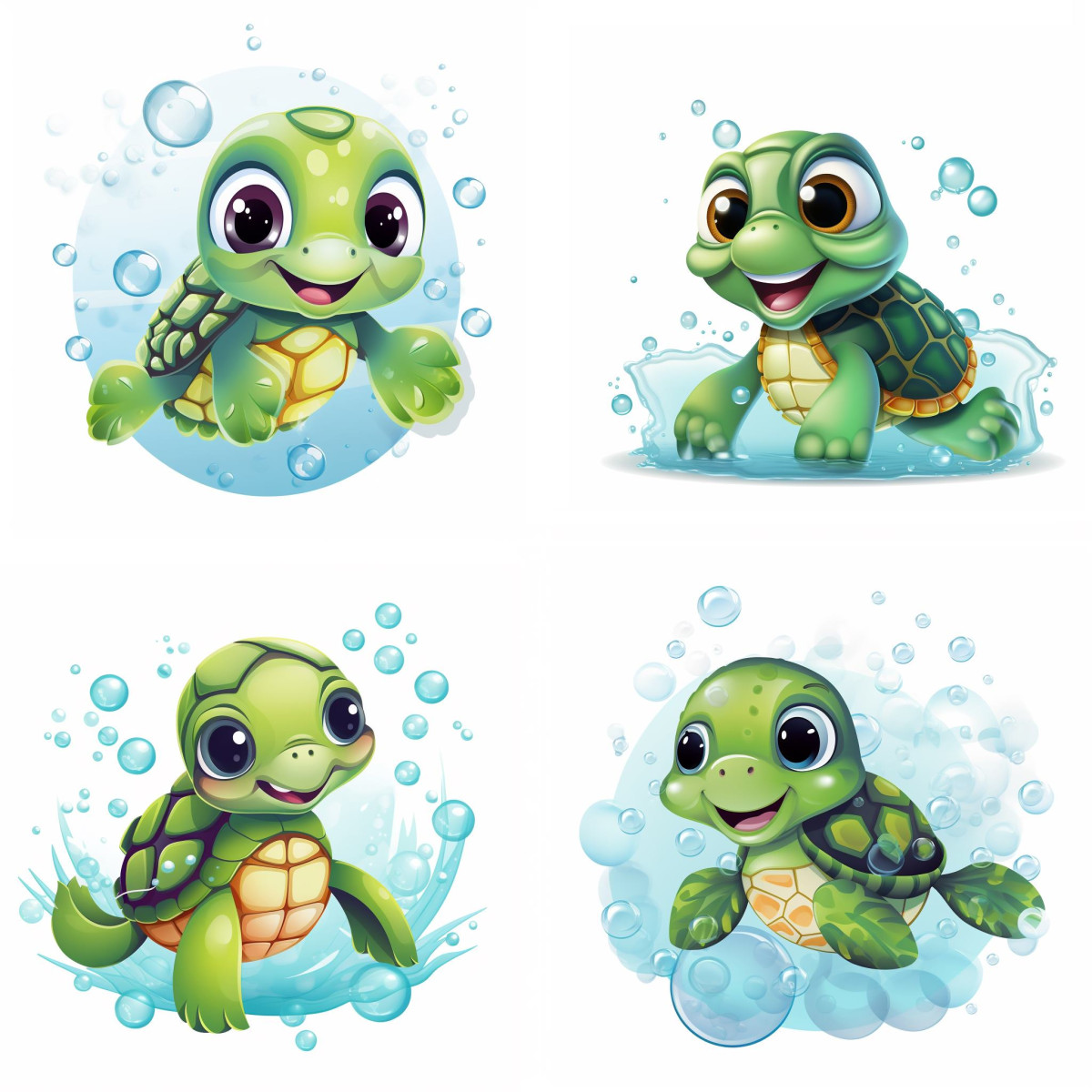 Teknősbékás falmatrica gyerekeknek, vízcseppes